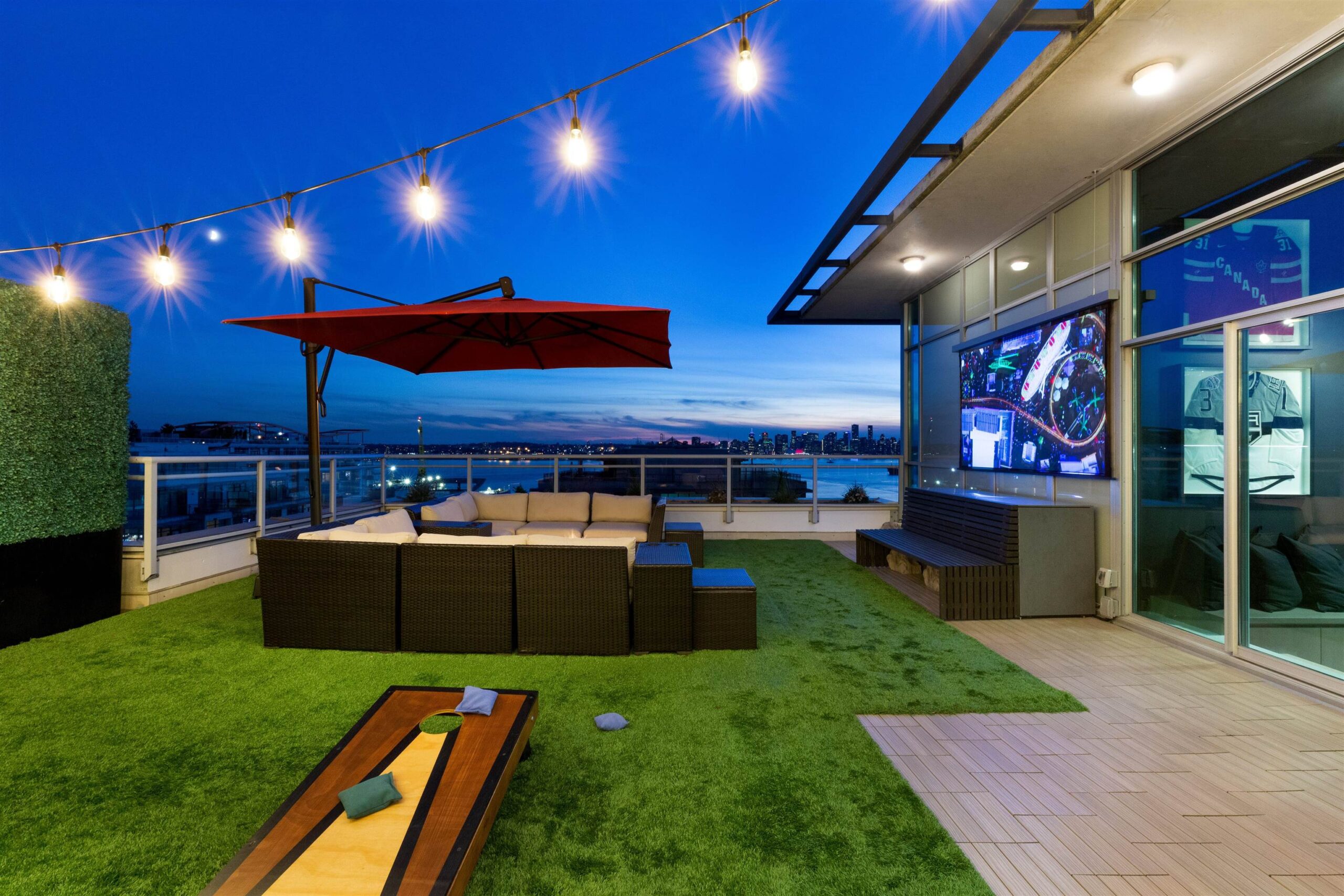 Magnificently designed, award winning trophy penthouse w/ breathtaking views in North Vancouver’s most sought after Lower Lonsdale enclave. 3700sf+ of combined indoor/outdoor living, this 3 bed/ 4 bath residence is as rare & spectacular as they come. Completely redesigned interior w/ impeccable materials & craftsmanship boasts 2082sf of interior space bordered by stunning millwork, wide plank engineered oak, custom glass stairwell, & over height ceilings. Custom poured concrete 11’island, SubZero/Bosch Appliances, Flos light fixtures, AC, & striking Nuvolato marble. Three full size bedrooms on the main incl. lavish primary w/ WIC & spa inspired ensuite. Incomparable 1249sf rooftop ‘Backyard in the Sky’ w/ wet bar, fitted astro- turf, & unmatched city & water views. In a class of its own.