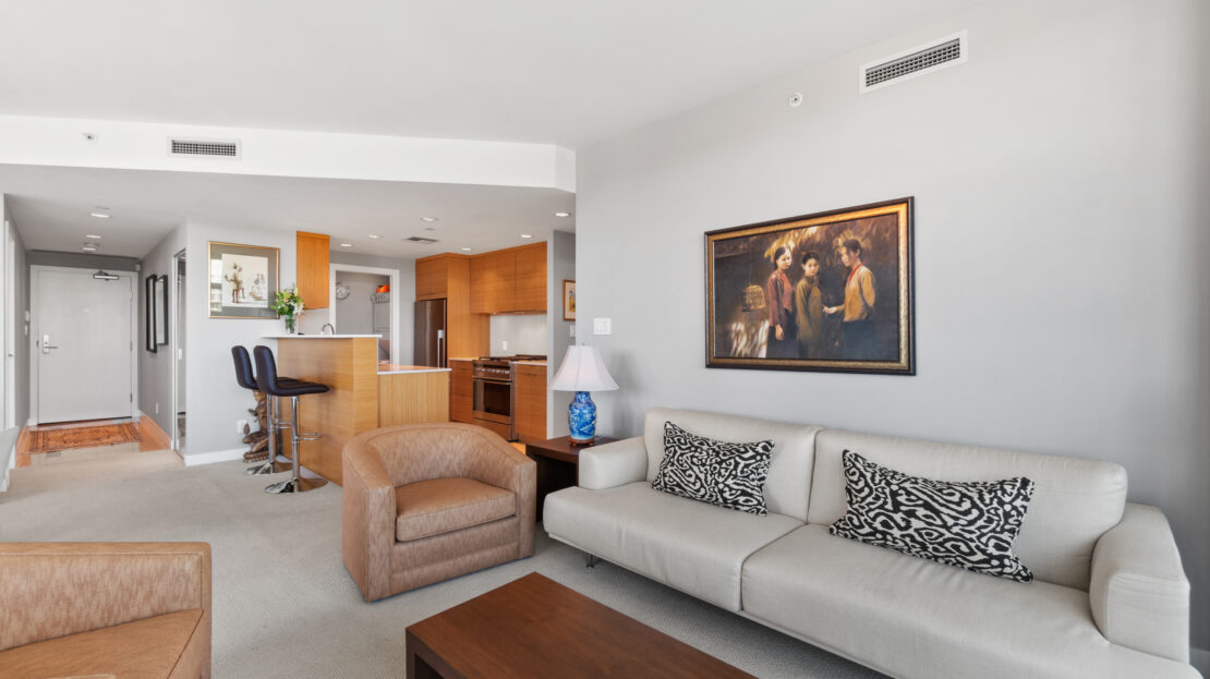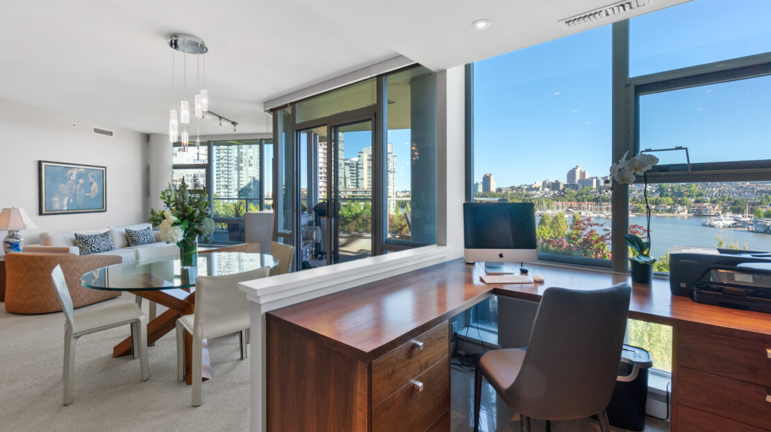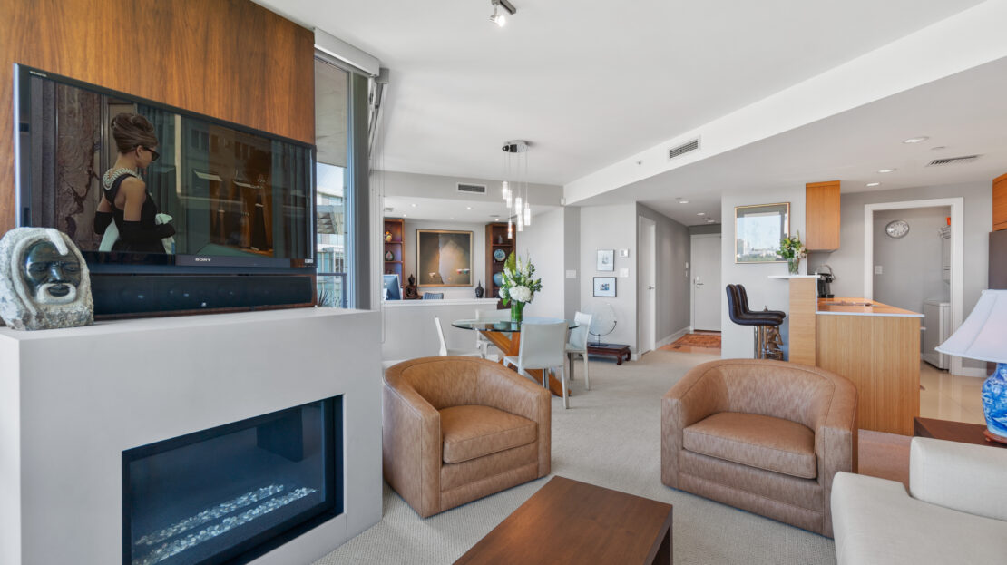 Proudly presenting 801 at ICON II. This is the most sought after plan in the building. Facing South and overlooking the ocean and George Wainborn Park, this property offers quintessential views from every room. Spacious and bright floorplan with renovated kitchen, 2 bed, 2 bath + den which has been beautifully opened up with custom millwork for your perfect work space. The sun drenched patio, perfect for BBQ’s is 331SF and overlooks the water. Features include A/C, gas fireplace, floor to ceiling windows, gas hookup, kitchen pantry and lots of storage space. The ICON lives up to its name. This reputable, sought after and posh residence offers superb amenities: 24 hr professional concierge services, 80’ lap pool, gym, billiards, theatre, party room, steam room & pitch & putt golf area. Pets/rentals OK. Desirable Beach District Location; right on the Seawall, steps to shops, restaurants and English Bay. Open Houses Friday July 15th 10am-12pm, July 16th/17th 2-4pm. Vancouver’s ICONIC Waterfront building!